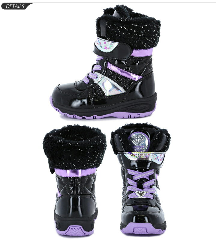 カラーリングにキラキラ素材を使ったカジュアルなデザインがポイント!! 雨雪時にもおすすめな「防水設計(4cm 4時間)」機能を搭載しています。