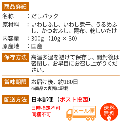 きほんのだしパック10g×30袋(300g)国産天然だしパック 【送料無料】/国内原料使用/国産/無添加/出汁/離乳食/メール便でお届け/マエカワテイスト/がってん寿司
